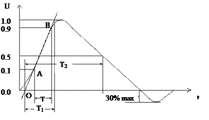 2、开路电压波形 前沿时间:T1=1.67T=1.2ms±30% 半峰时间:T2=50ms±20%
