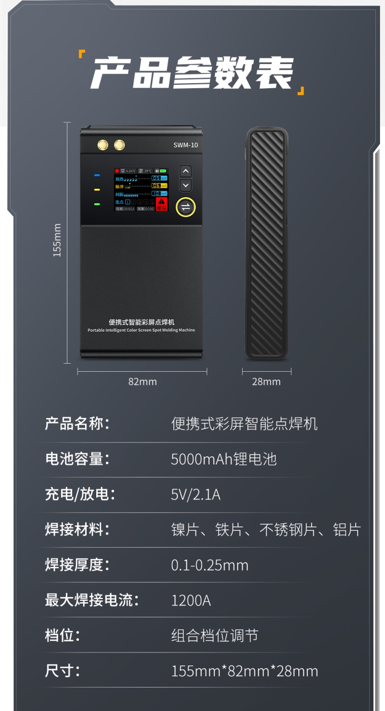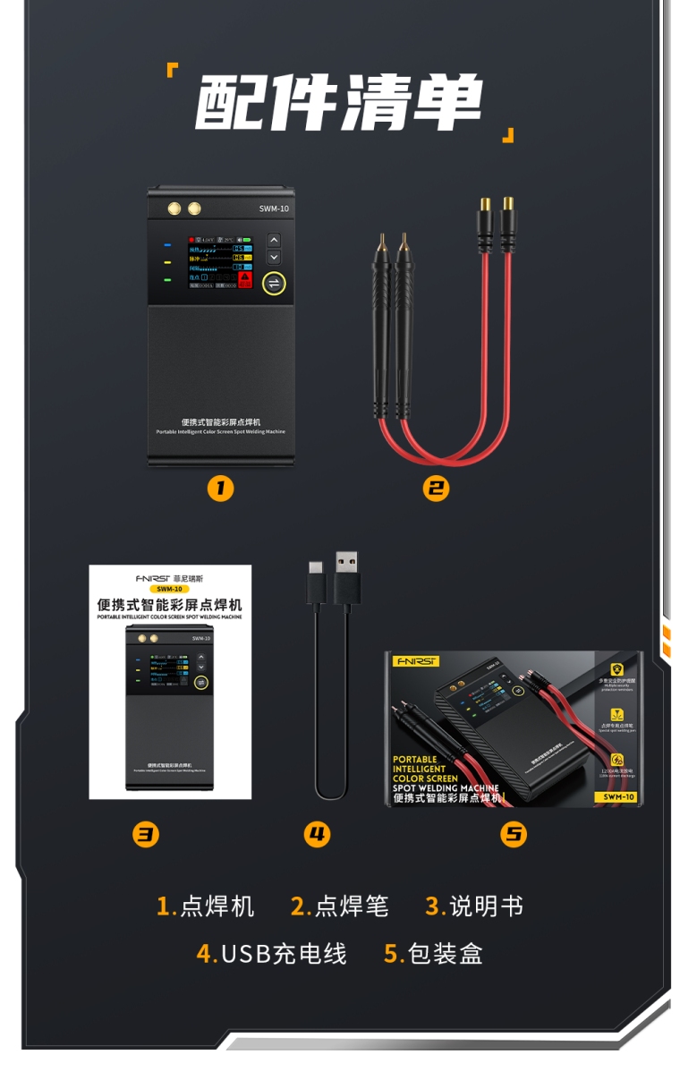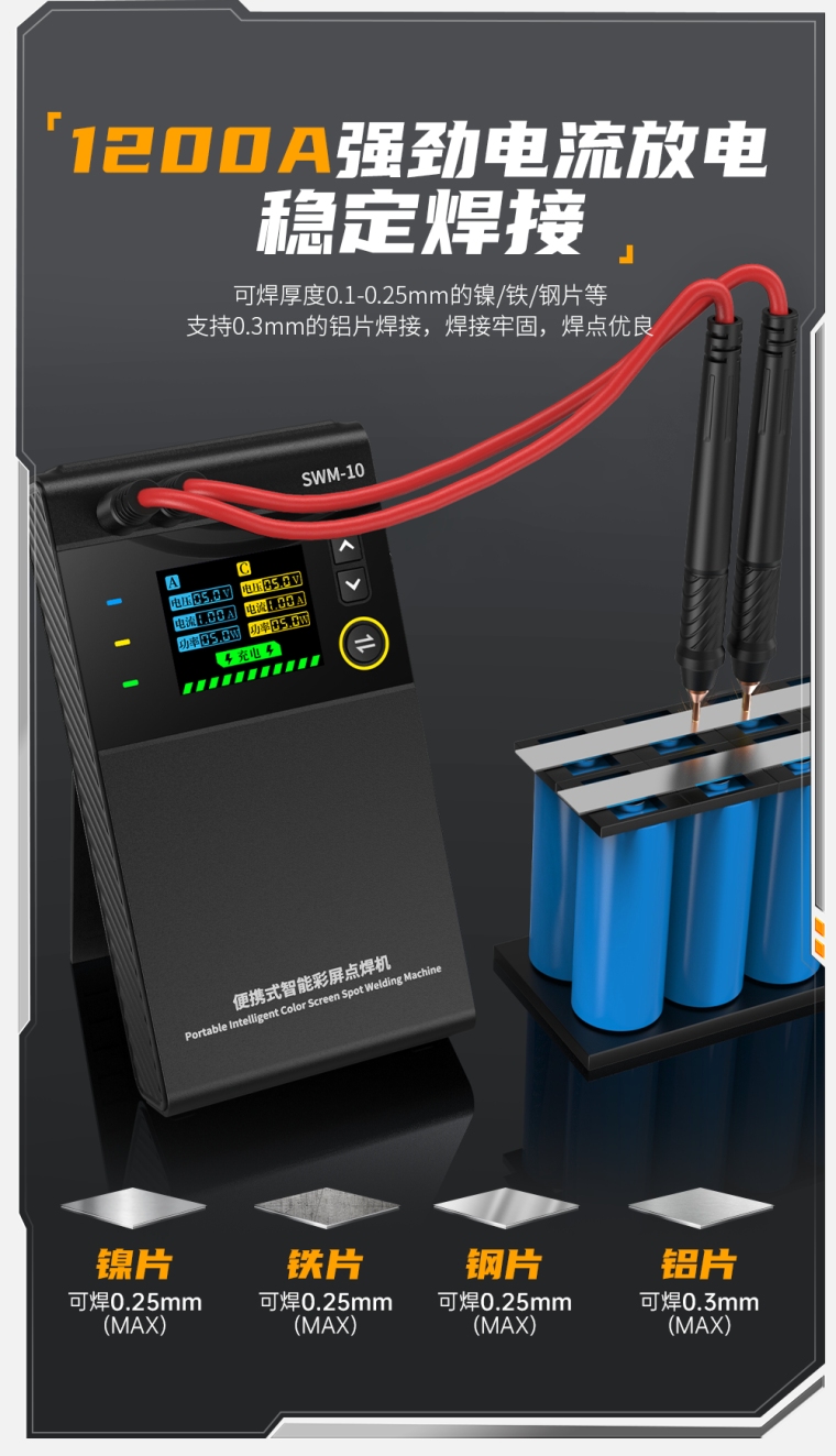 FNIRSI SWM-10便携式彩屏智能点焊机
