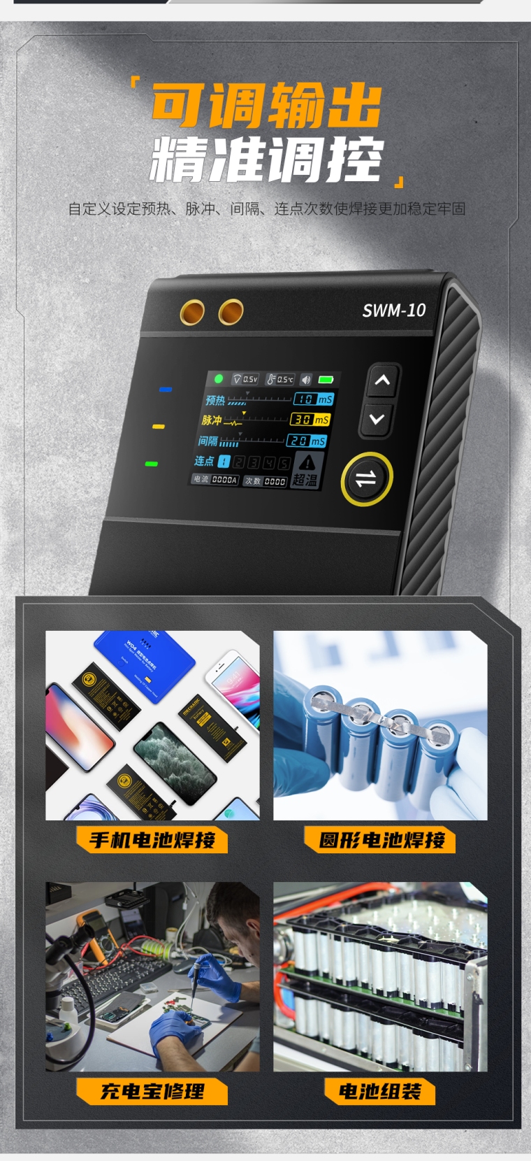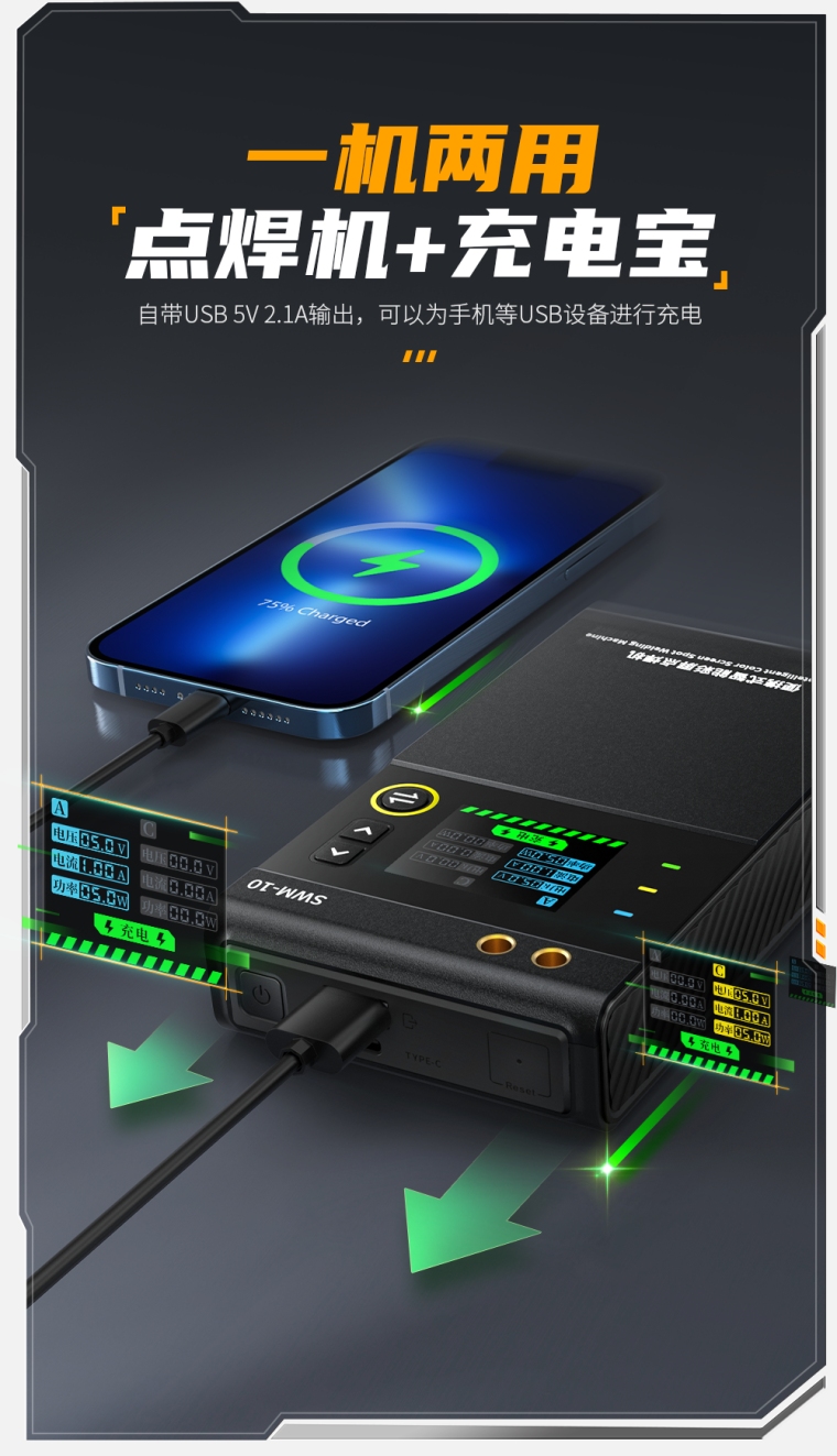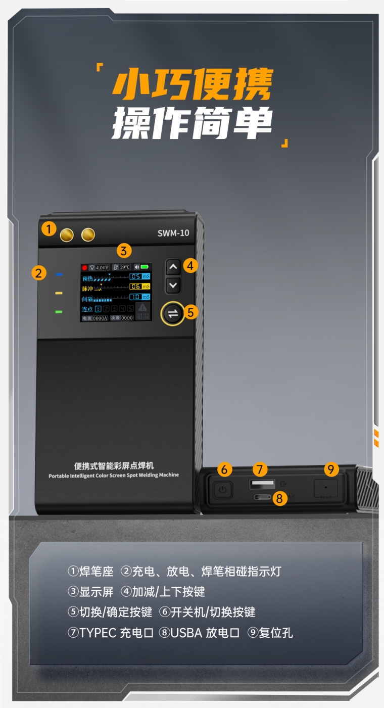 FNIRSI SWM-10便携式彩屏智能点焊机