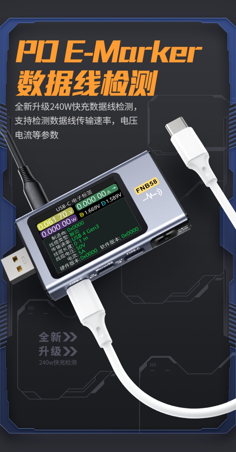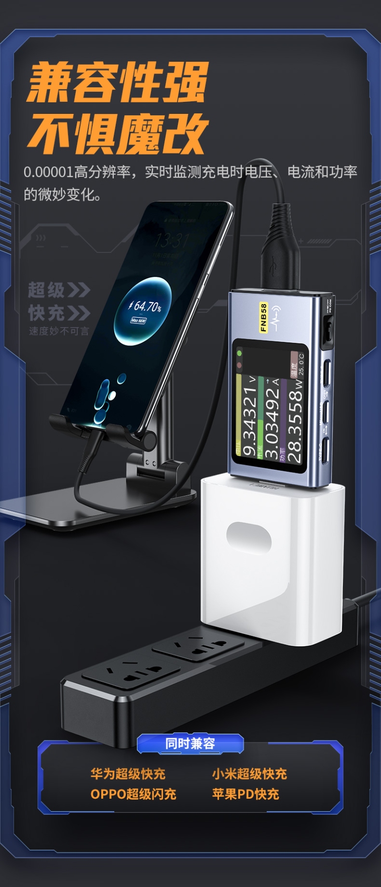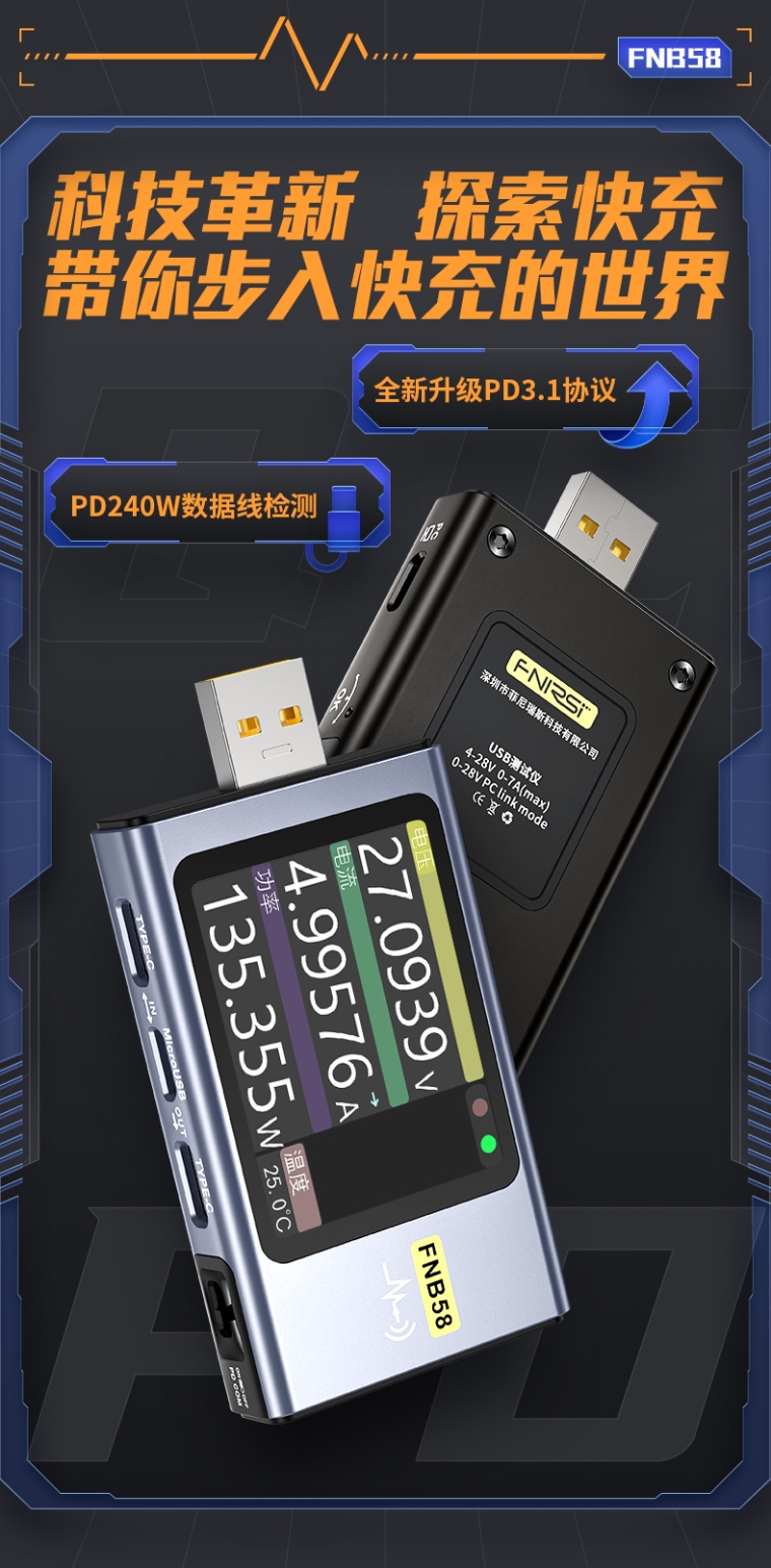 FNIRSI-FNB58 USB电压电流表Type-C快充功率测试仪