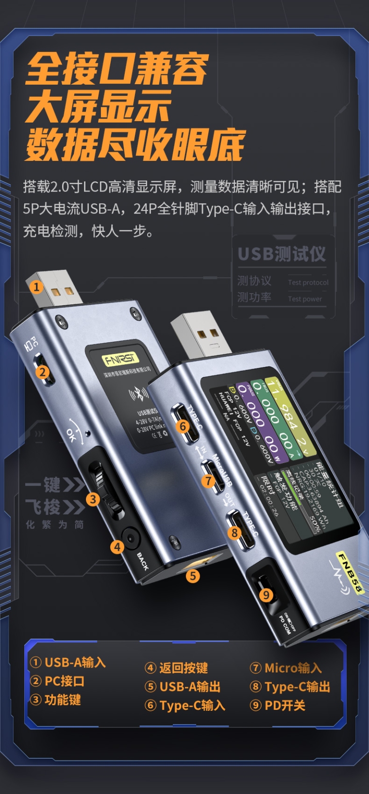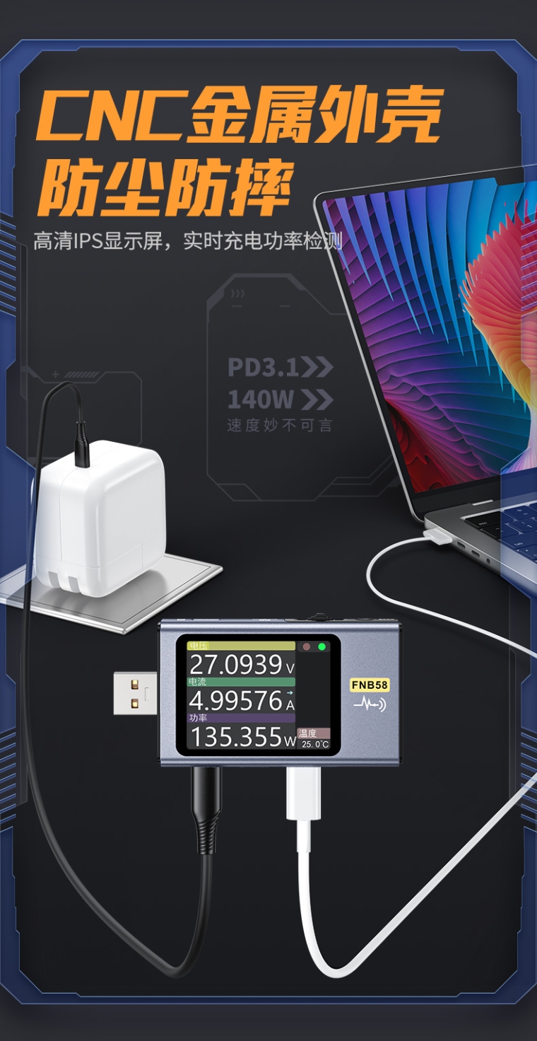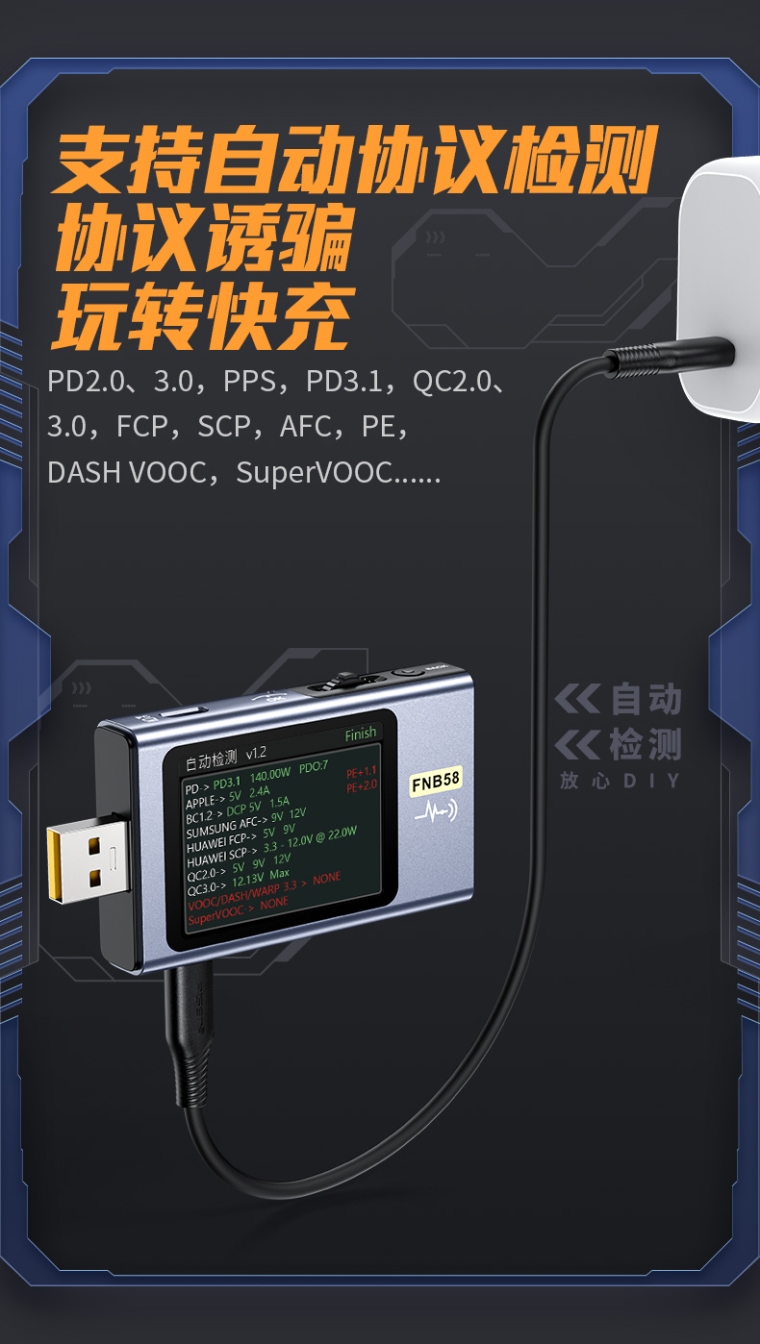 FNIRSI-FNB58 USB电压电流表Type-C快充功率测试仪