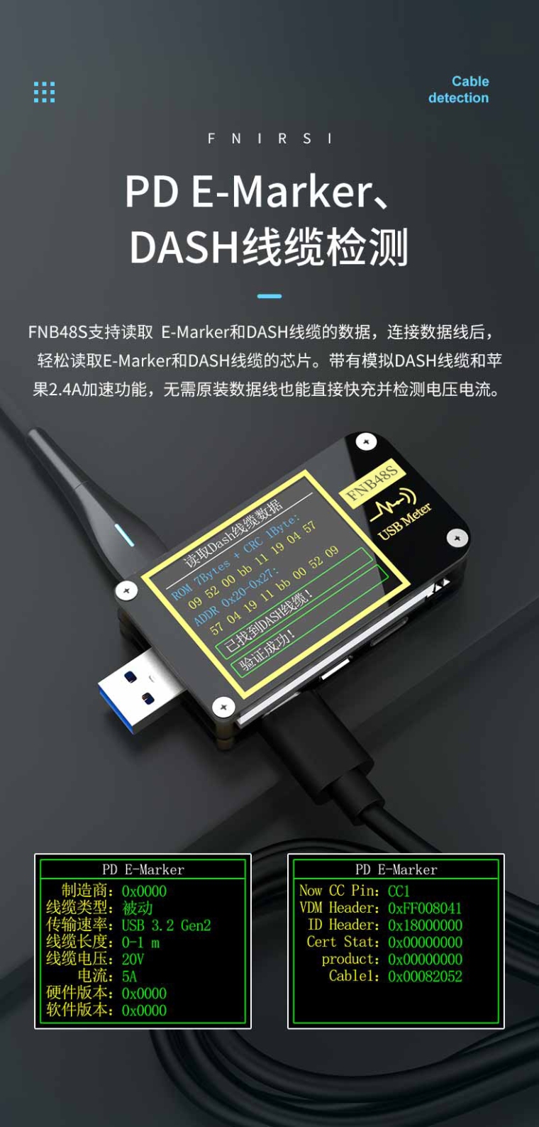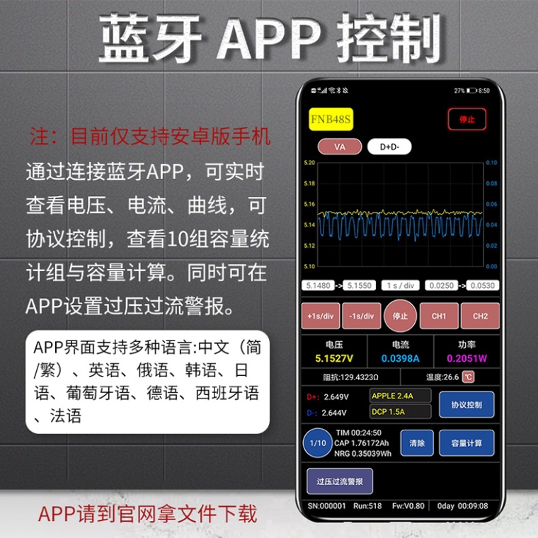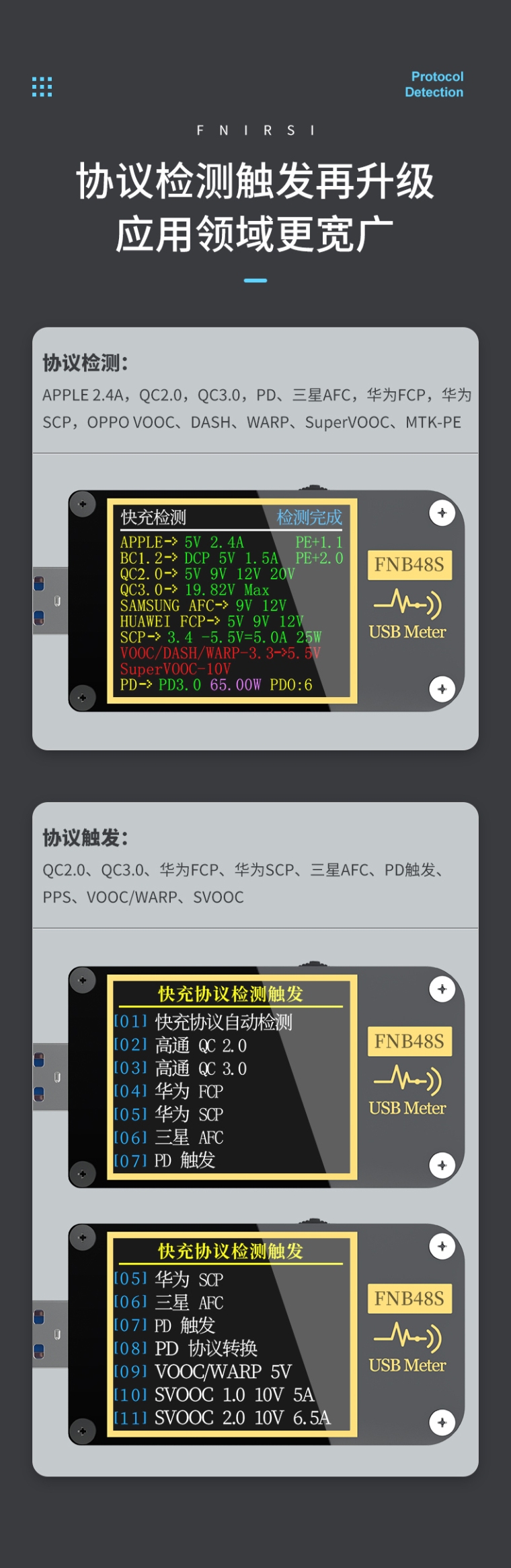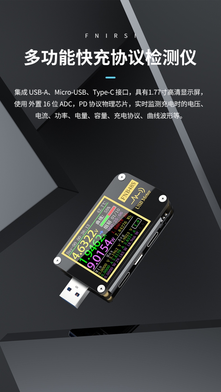 FNIRSI-FNB48S USB电压电流表多功能快充测试仪