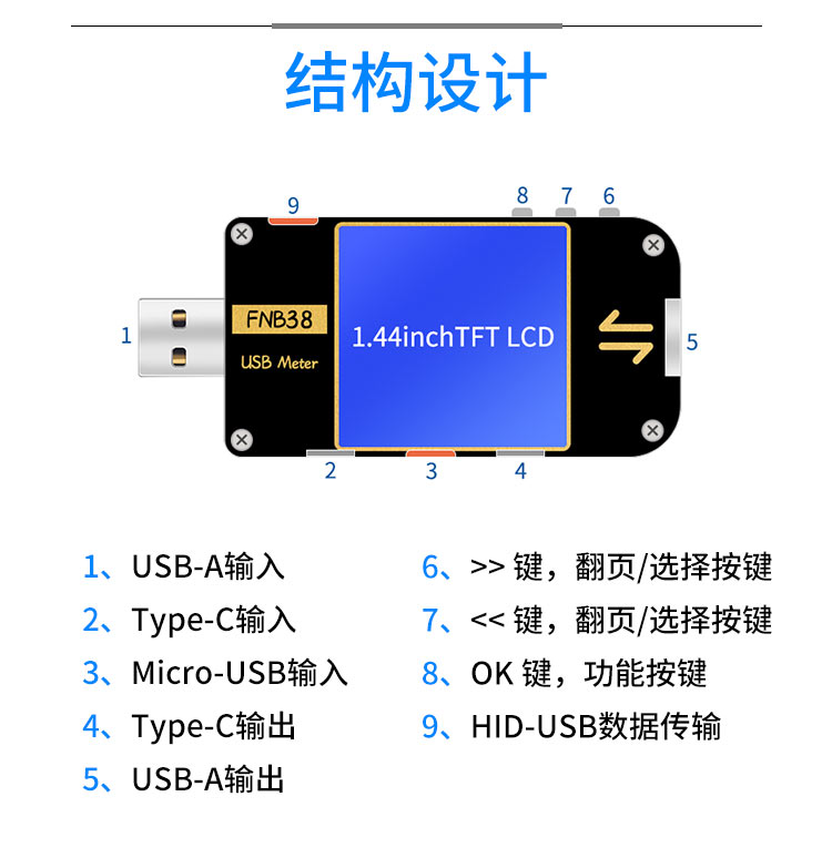 FNIRSI FNB38 USB电压电流表容量快充协议测试仪