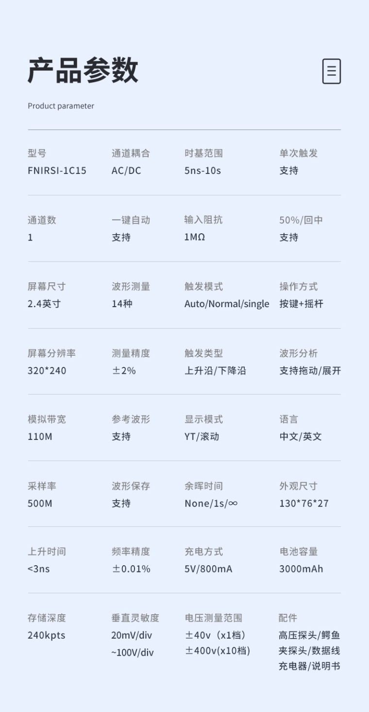 我对您的1C15 110MHz手持数字示波器产品感兴趣,请发具体的信息及报价,谢谢!