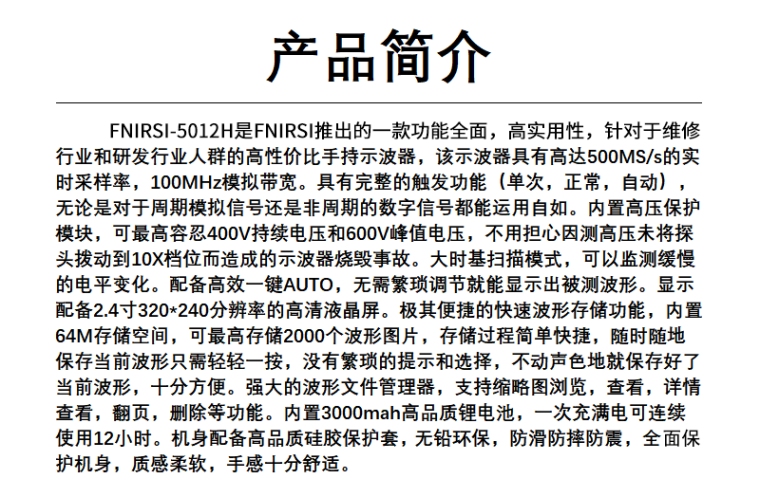 5012H 100MHz手持数字示波器