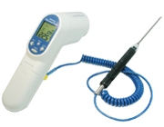 一般说明 TN408LC是温度测量最基本的工具. 它包括二个最可靠的传感器: 1) 非接触热电堆 2) K型热电偶 这样的设计方式可满足大多数温度测量的要求: 使用非接触方便量测不可靠近地方的温度. 使用热电偶方便准确的量测非表面的温度. Templorer 具有超长的电池寿命 (碱性电池使用8天), 它使用的是廉价的7号电池. 通过Templorer获取发射率: 对于一般用户获取发射率是一个非常困难的概念. 但是,通过Templorer,可以非常容易的得,就是使用接触式测温仪得到实际的温度, 然后使用非接触测温得到表面温度,调整发射率使它们的量测结果一致即可. 下一次,就可以使用正确的发射率量测目标温度。不用去猜测,也不用去查发射率的表. TN4 红外线测温仪 (激光温度计) FOV 测试/ D:S 测试. ![]() |