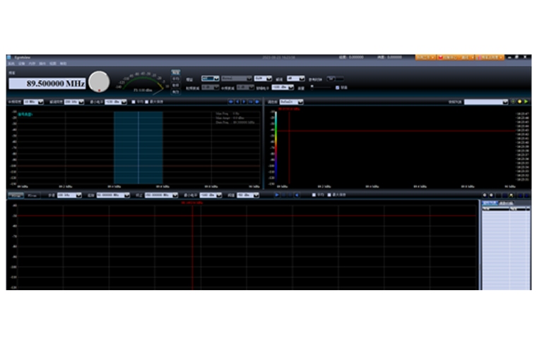 | 频率扫描 频率扫描模式主要用户固定频道间隔的无线电服务监测。用户可以灵活的设置扫描频率范围和频率步进值,并针对不同的信号设置不同的扫描变量。 |