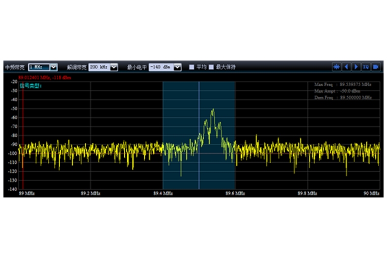 | 频率扫描 频率扫描模式主要用户固定频道间隔的无线电服务监测。用户可以灵活的设置扫描频率范围和频率步进值,并针对不同的信号设置不同的扫描变量。 |