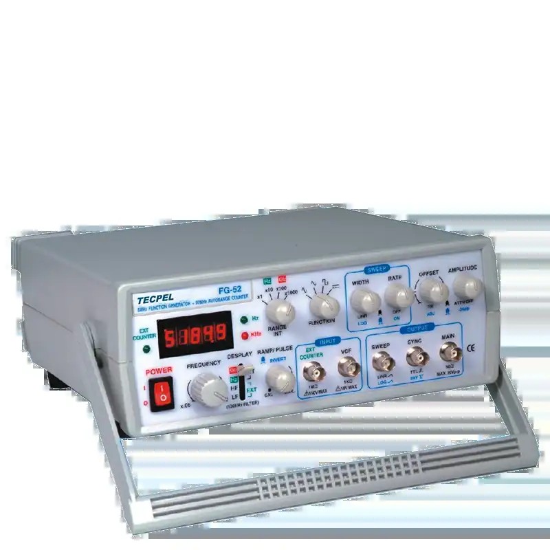 FG-52 函数信号产生器可产生正弦波、三角波等波型,其中方波和三角波形也可以作为振荡器使用。 量测规范 - 显示位数 :5位数LED
