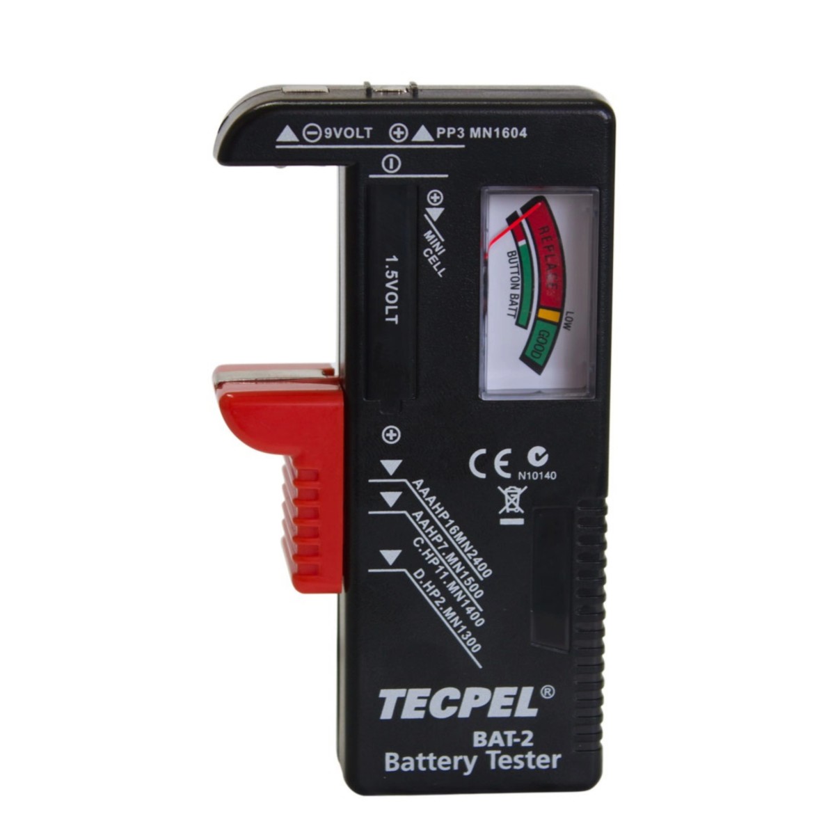 特征: 1. BAT-2 测试不需要任何内部电池。 2. 易于将颜色编码显示解释为“良好”、“低”和“更换/充电”指示灯 3.可测试标准或可充电电池类型:9V、AA、AAA、C、D、1.5V钮扣电池 4.轻巧方便,使用方便