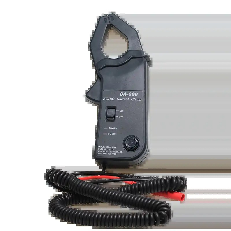CA-600 电流钩部,可将量测的电流值转为电压,连结电表或其它仪器设备。 CA-60 和 CA-600 两种型号的电缆长度为 卷曲的电线 2.63 英尺(80 厘米)和延长线能够达到 4.3 英尺(130 厘米)约。