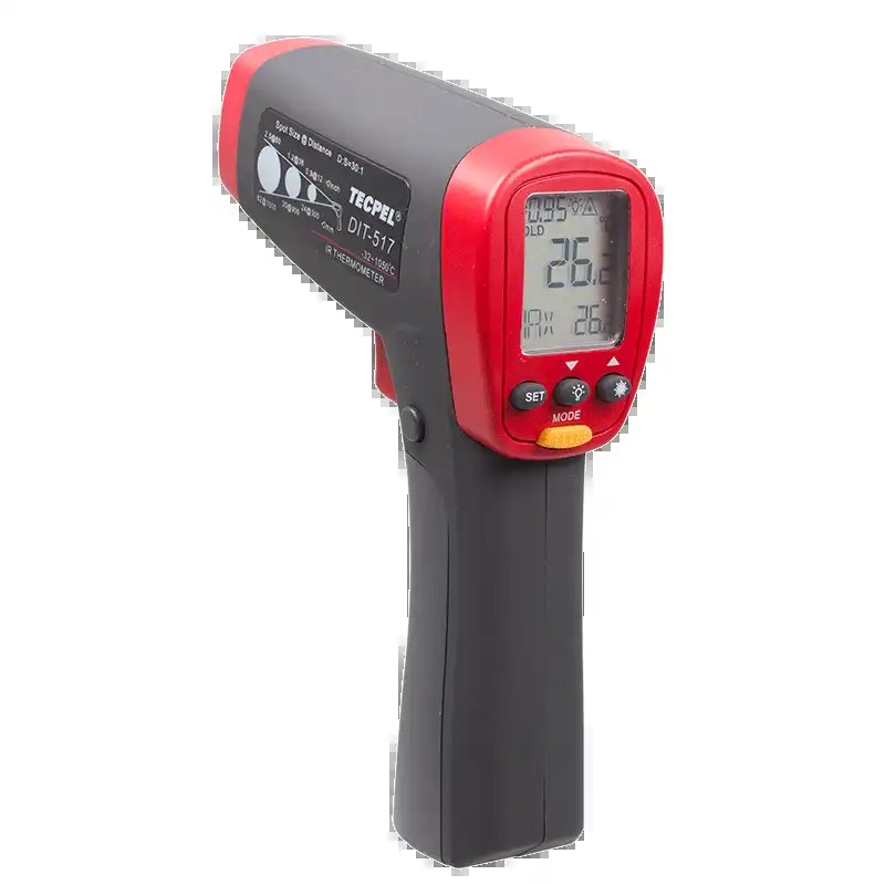 红外线温度计具有快速量测特性,能立即量测到物体表面温度,DIT-517 可设定温度警报,提示使用是否于规范内。 量测规范 - 红外线 温度范围 :-32 ~ 1,050 °C