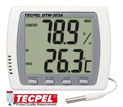 DTM-303A 数位温湿度计,清晰易读的大型字幕,温湿度同时显示一目了然。 量测规范 - 温度范围(IN) :-10 ~ 50°C (14 ~ 122°F)