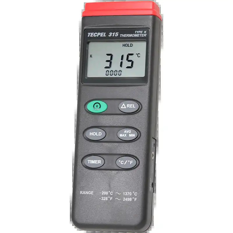 DTM-315 可同时显示时间及量测温度,且能透过RS-232 传输量测数据。 量测规范 - 温度范围 :-200~1300°C (-328~3498°F)