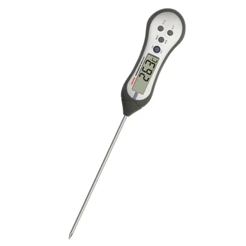 探针式温度计是使用范围相当广泛,像是油温、水温、物体温度及环境气温都能适用。