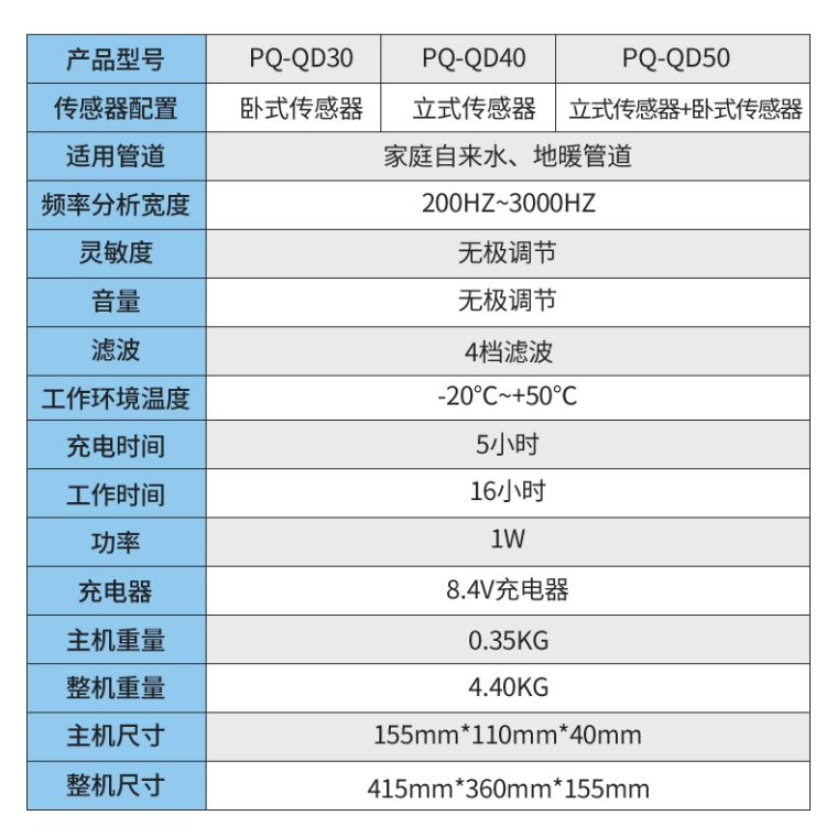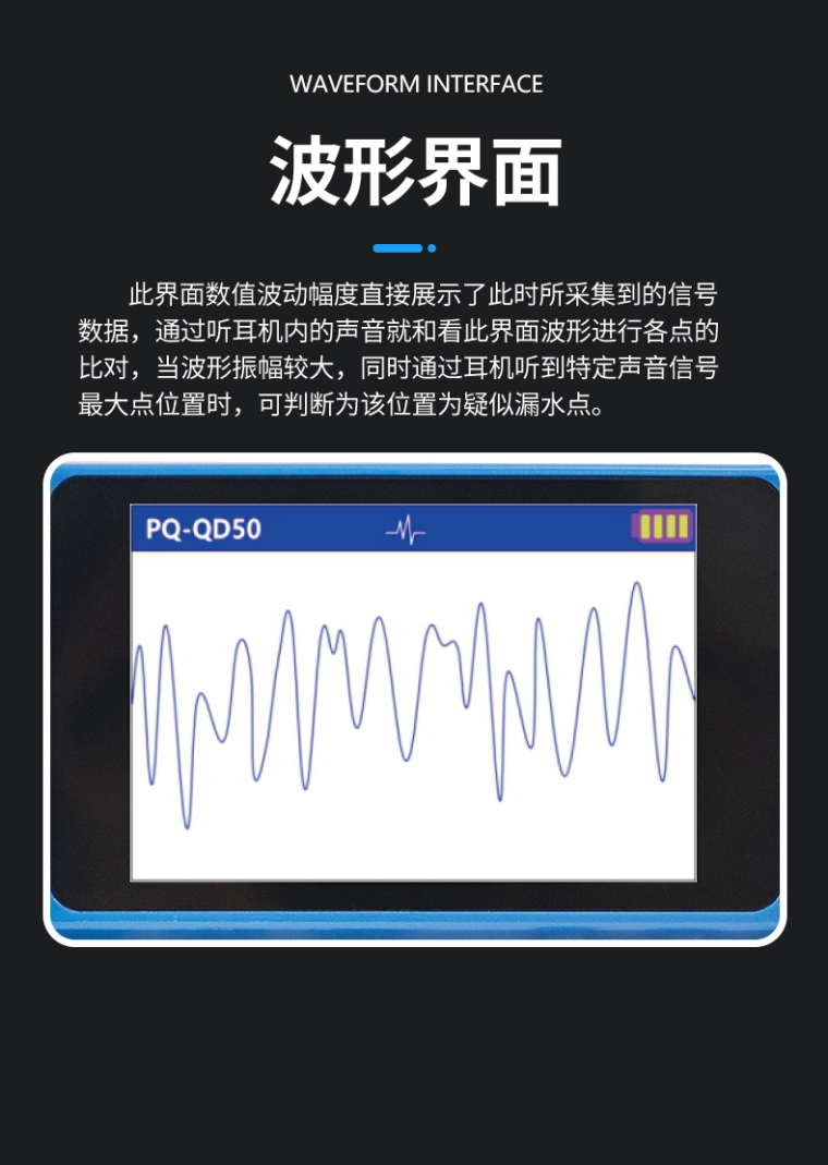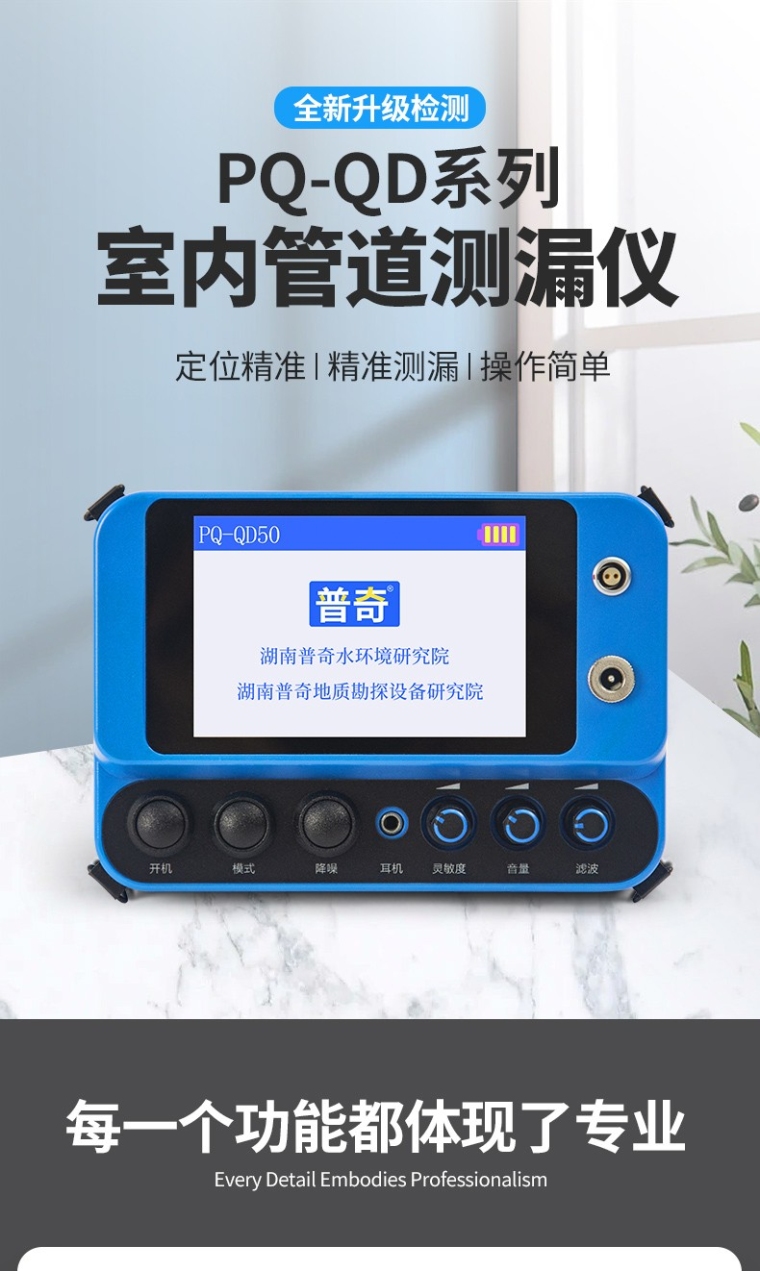 PQ-QD50系列型管道测漏仪,是性能优异的漏水检测仪器,拥有超强的抗干扰与数据处理能力,可以使您的工作更加轻松