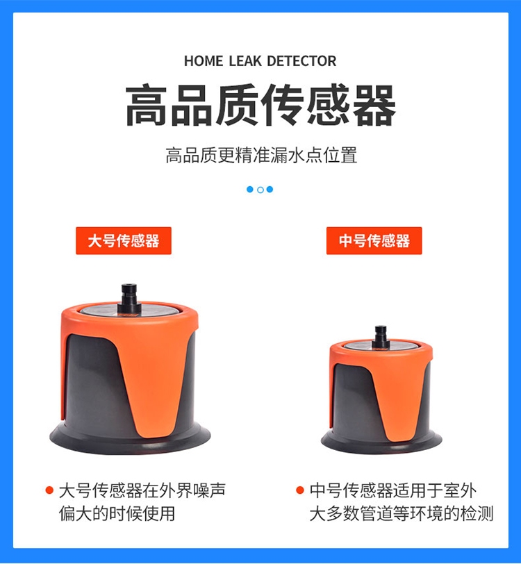 普奇-L6000型外网测漏仪可选配大号传感器和中号传感器,通过使用传感器对管道漏水声音和信号进行采集, 采集后的信号通过主机处理,以信号柱和频谱的方式显示在主机页面上,同时声音也会通过主机输出到防噪耳机,通过“听”,“看”两种方式结合分析判断漏水点。