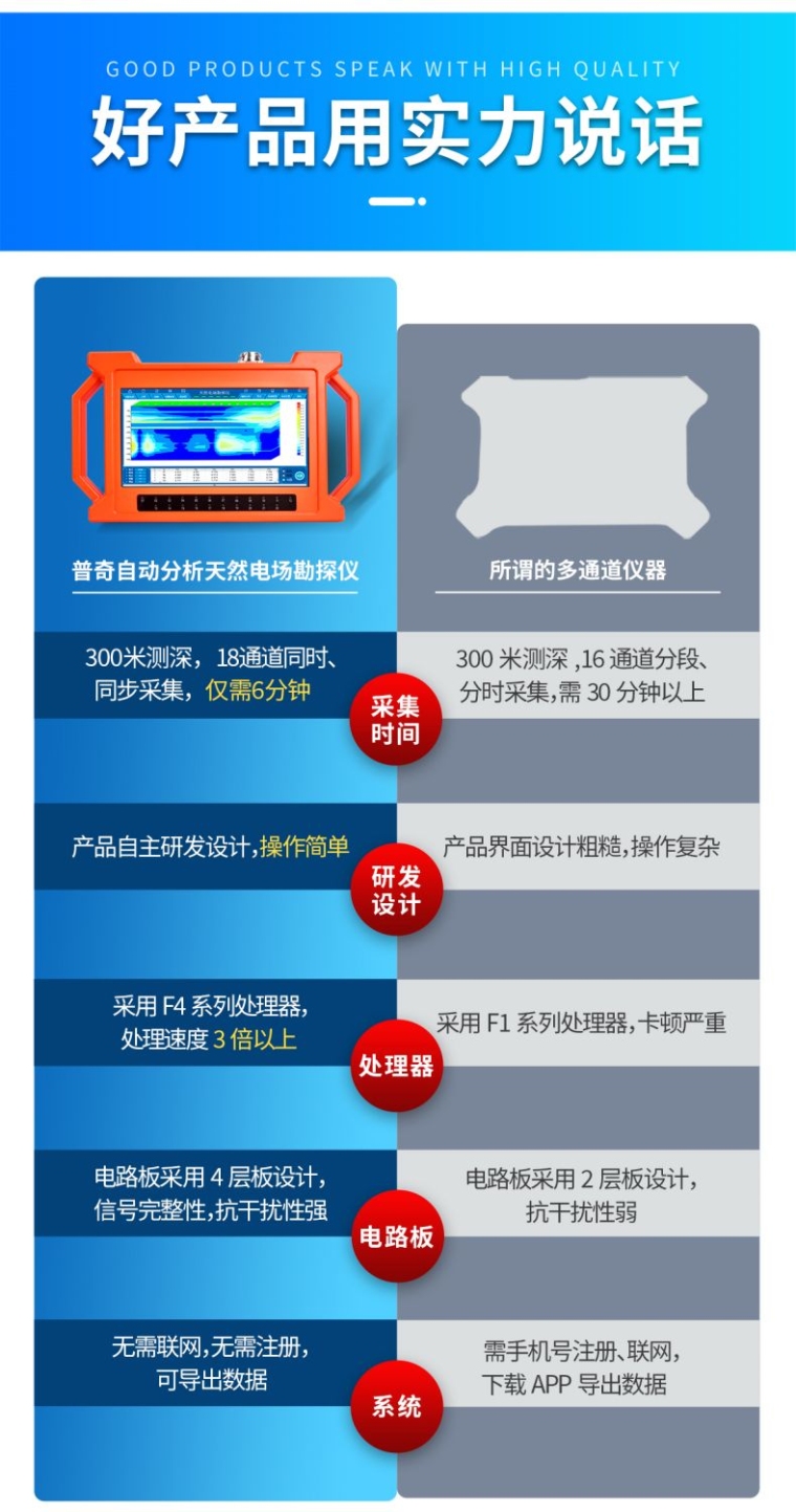 普奇GT系列打井找水仪是湖南普奇地质勘探设备研究院、湖南普奇水环境研究院联合自主研发的第八代基于天然电场选频法原理的多通道勘探仪,广泛应用于地下水源、地质构造、矿脉、矿道、空洞、溶洞、蚁穴、采空区、堤坝管涌、山体滑坡等领域的勘探。