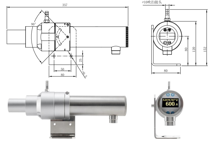 安装角度可以任意调节,自带吹扫套,可有效防尘,适用于环境温度不高的场合下使用。