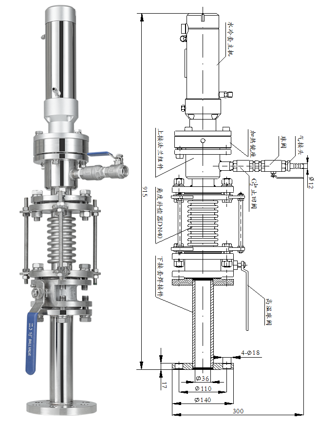 适用于DN40或DN50的不锈钢法兰盘,优先选用DN40法兰盘。 (4)主机结构图
