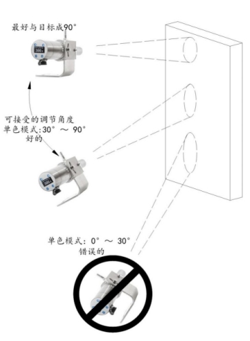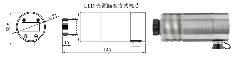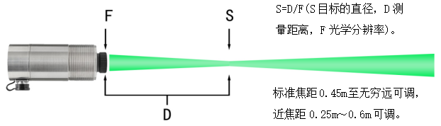 采用可调焦镜头,LED绿光源瞄准,光源的寿命长达10万小时。1:1指示出测量目标的大小。LED光源适用于近距离安装(如3m内)和非封闭环境中目标的检测。