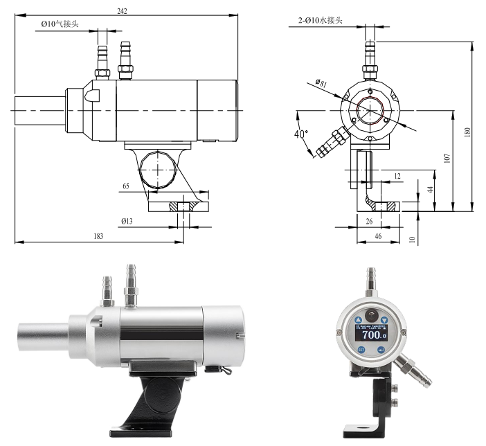 安装角度可以任意调节,自带吹扫套,可有效防尘,适用于环境温度不高的场合下使用。 (3)MARS系列带水套和吹扫套