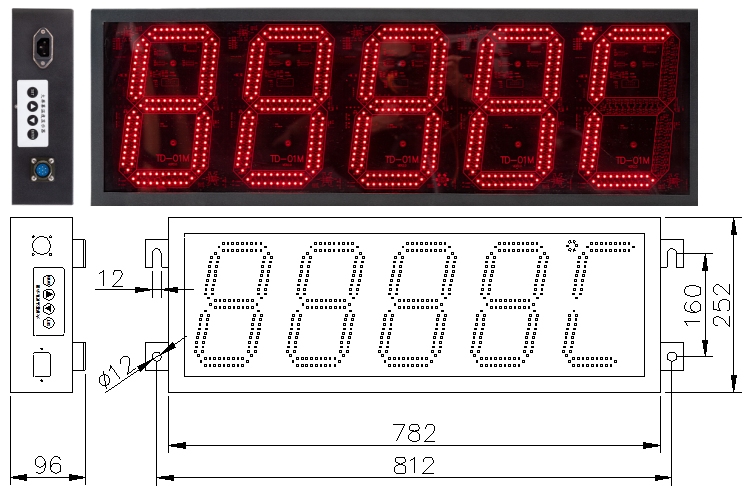 TD800系列大屏幕温度显示器是一种智能型温度显示器,是红外测温仪或其它检测器仪器的显示配套仪表。采用点阵红色LED扫描显示,相比普通方式,功耗更低。显示的像素精确到每个像素,即使个别的损坏也不会影响整个显示。可以悬挂在墙上,100米内清晰可见,显示直观、方便。 它可任意修改仪表的量程设置,信号处理功能有峰值、谷值、平均值。并可以根据用户需求,保留一段时间内的平均温度,下一个温度到来时自动更新。带仪表自检功能和精度校正功能。 技术参数