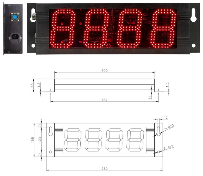 TD500系列大屏幕温度显示器是一种智能型温度显示器,是红外测温仪或其它检测器仪器的显示配套仪表。采用点阵红色LED扫描显示,相比普通方式,功耗更低。显示的像素精确到3个像素,即使个别的损坏也不会影响整个显示。可以悬挂在墙上,50米内清晰可见,显示直观、方便。 它可任意修改仪表的量程设置,信号处理功能有峰值、谷值、平均值。并可以根据用户需求,保留一段时间内的平均温度,下一个温度到来时自动更新。带仪表自检功能和精度校正功能。 技术参数
