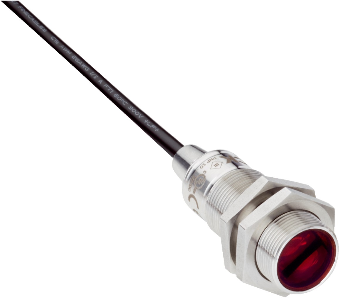 产品特点 | 工作原理 | 镜反射式光电传感器 | | 工作原理详细信息 | 与反射镜保持最小距离(双透镜系统) | | 尺寸(宽 x 高 x 深) | 18 mm x 18 mm x 55.9 mm | | 外壳形状(光束出口) | 圆柱形 | | 壳体长度 | 55.9 mm | | 可用的螺纹长度 | 31.7 mm | | 螺丝直径(外壳) | M18 x 1 | | 光轴 | 轴向 | | 最大开关距离 | 0.03 m ... 7.2 m 1) | | 感应距离 | 0.06 m ... 6 m 1) | | 光源种类 | 可见红光 | | 光源 | PinPoint-LED 2) | | 光点尺寸(距离) | Ø 175 mm (7 m) | | 轴长 | 650 nm | | 设置 | 无 | | 显示 | | | LED,绿色 | 状态指示灯 持续接通:上电 | | LED 黄色 | 光接收状态 持续接通:物体不存在 持续断开:物体存在 |