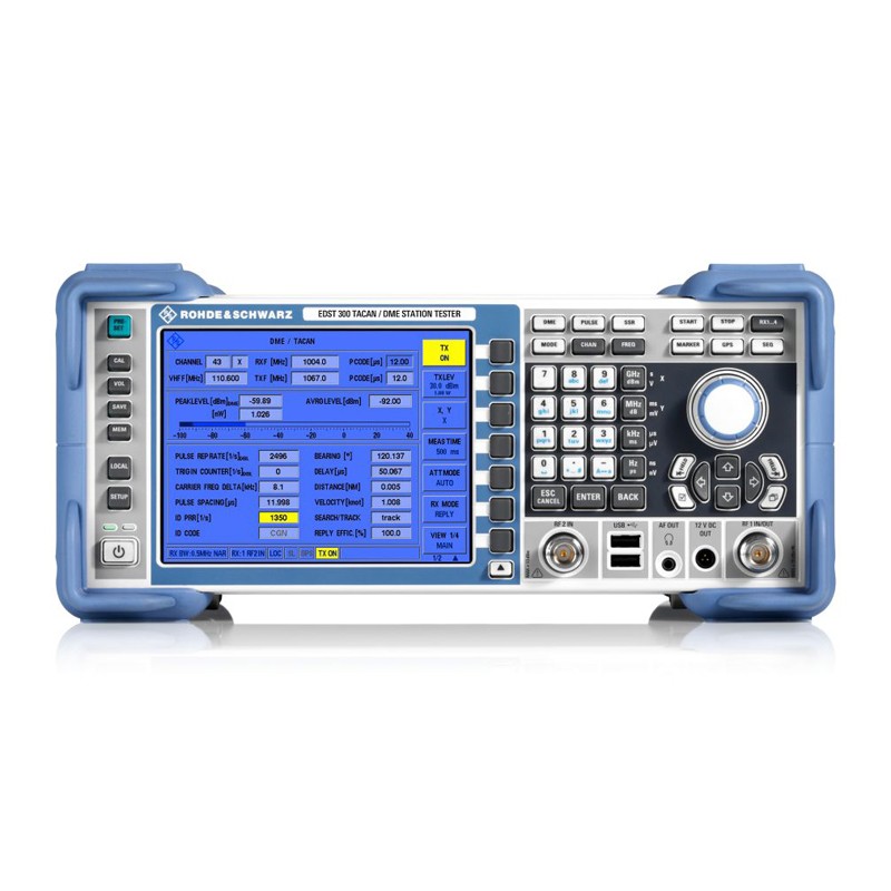 R&S®EDST300 TACAN/DME 站点测试仪 TACAN 和 DME 站点维护检查 使用测试天线的空间信号分析 R&S®EDST300 TACAN/DME 站点测试仪是一种专用于调试、测试和维修脉冲地面导航系统的分析仪。R&S®EDST300 具有宽动态范围且设计紧凑,非常适用于 TACAN 和 DME 地面站的有线与现场测量。 主要特点 针对 TACAN 和 DME 系统的精确收发测量 符合 MIL‑STD‑291C 和 STANAG 5034 高动态范围 (110 dB) 和精确的峰值功率测量 精确高效地测量 TACAN/DME 特性参数 体积小巧,包含内部电池 产品性能特点