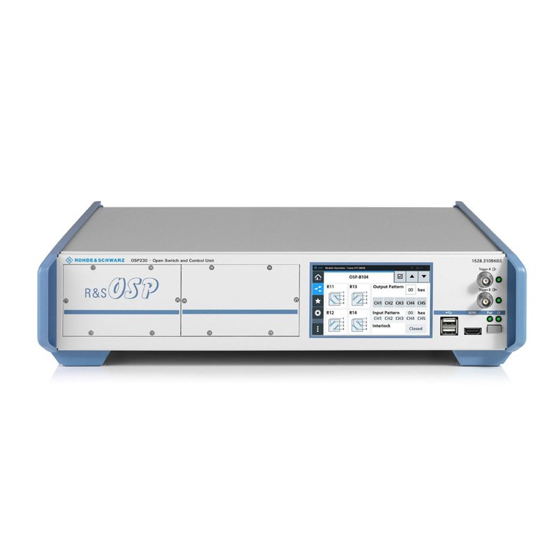 R&S®OSP 开放式切换及控制平台 模块化 R&S®OSP 开放式开关和控制平台设计用于射频开关和控制任务。 R&S®OSP 提供两款紧凑型 2 HU 型号(R&S®OSP220、R&S®OSP230)和一款较大的 3 HU 型号 (R&S®OSP320),可满足多种测试场景的要求,包括用于实验室测量的桌面配置和复杂的机架集成式测试系统。 R&S®OSP230 型号配备手动控制触摸屏。R&S®OSP320 型号可配备显示器选件。 主要特点 模块化、可靠、经济高效 紧凑、安全、灵活 强大的控制和射频继电器模块,最高 67 GHz 系统配置可扩展 便捷的手动和远程控制与触发功能 产品性能特点