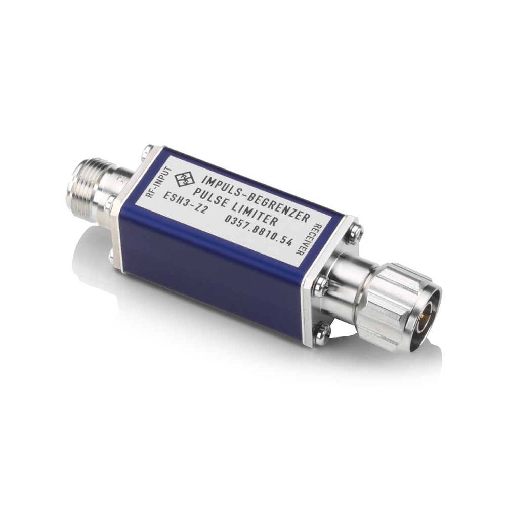 R&S®ESH3-Z2 脉冲限幅器可保护测量接收机输入免受高射频输入电平和高能量干扰脉冲的影响,例如开启和关闭被测设备或切换人工电源网络的相位时。