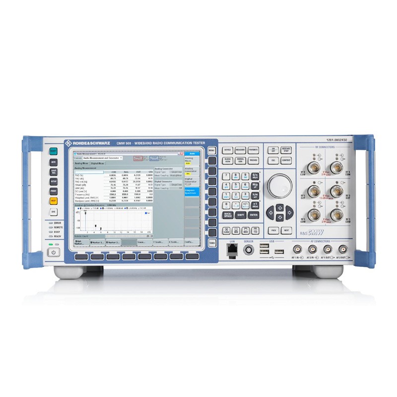R&S®CMW500 宽带无线电通信测试仪 R&S®CMW500 宽带无线电通信测试仪是适用于射频集成和协议开发的通用测试平台。此类测试仪可作为 R&S®CMW500 连接平台和 R&S®CMW500 协议测试仪。R&S®CMW500 包含全集成式端到端数据解决方案,支持全面的 IP 吞吐量和质量测量。此类测试仪内置衰落模拟器,能够在实际传播条件下轻松执行测试。R&S®CMW500 可在产品开发、生产、维修的所有阶段使用。此解决方案支持广泛技术。 CMW500 主要特点 支持多无线电接入技术的信令:LTE、WCDMA、GSM、WLAN、Bluetooth LTE-Advanced:8 DL CC,最高 4x4/8x2 MIMO 衰落,2 UL CA WLAN 11 a/b/g/n/ac/ax SISO 和 MIMO 信令测试 用于应用测试的内部服务器 CMW500 产品性能特点
