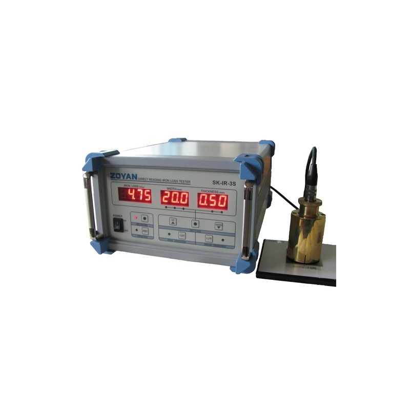 IR-3S 是直读式铁损测试仪SK-IR-3C 的改进型新产品。本测试仪用于硅钢片铁损值的现场检测,可广泛使用在硅钢片生产厂家、流通领域、马达·变压器及其他利用硅钢片制造产品的品质管理,包括出货、进货和成品抽样检验等,原材料及冲压后成形的单片均可测试。重量轻、体积小,操作简单、方便。只用一片硅钢片材料或冲压成品便可直接读出以W/kg 形式表示的铁损值,无需专门制作试样。电磁钢板 (硅钢片)、取向和无取向、冷轧和热轧钢板及普通铁板等均可使用。