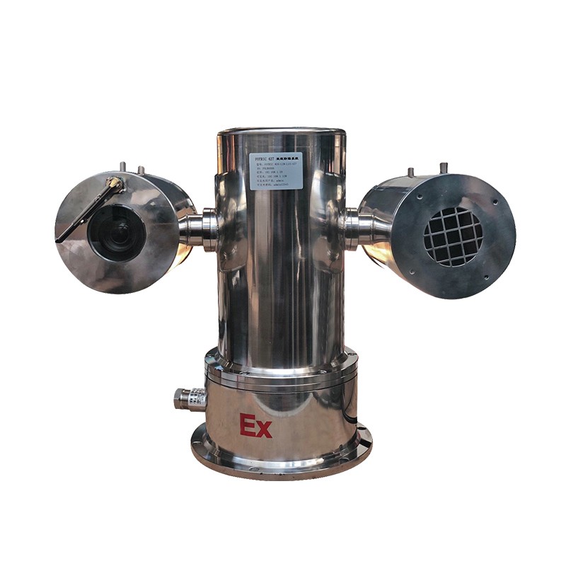 FOTRIC 427防爆双仓热成像 适用于工厂具有ⅡA、ⅡB、ⅡC级T1~T6组可燃性气体、蒸气与空气形成的爆炸性混合物的0区、1区、2区场所以及可燃性粉尘与空气混合形成的20区、21区、22区爆炸危险场所。如石油、化工、码头、油库、轮船、钻井平台、加油站、矿井、港口、航天、**、医药、钢铁、花炮生产、机械、粮食加工储存等场所。此款云台壳体采用不锈钢材料制造,视窗采用双面镀防水膜钢化玻璃,结构合理,外观简洁。具有预置位、自动扫描、自动巡航、寻迹、守望位等功能。可广泛应用于边防、**、仓库、船舶、危险物品生产等重要领域。 制造标准 GB3836.1-2000《爆炸性气体环境用电气设备第1部分:通用要求》 GB3836.2-2000《爆炸性气体环境用电气设备第2部分:隔爆型“d”》 GB 12476.1-2000《可燃性粉尘环境用电气设备第1部分:用外壳和限制表面温度保护的电气设备》 认证资质 国家防爆电气产品质量监督检验中心【CNEX】,防爆标志为ExdⅡCT6Gb/ExtD A21IP67 T80℃。 产品特点 ●高度集成防爆云台、防爆红外摄像机、防爆解码器,体积更小更轻便,功能更智能先进; ●原装210万高清一体化机芯,20倍光学变焦. ●适用于多种可燃性气体或粉尘存在的危险恶劣环境,双侧载结构设计。 ●采用不锈钢材质,一体化简洁设计,视窗采用双面镀防水膜钢化玻璃,抗冲击,具有良好屏蔽和散热作用。防爆,防尘,防水,防锈 ●360°水平旋转,-90°~+90°垂直运动,全方位监测可疑目标。 ●RS-485控制功能,兼容多种通讯协议和通讯速率,能准确快速地响应各种主机的指令; ●30米-100米自适应红外可视距离,即使在光线很差的情况下依然可以获得高品质图像; ●光学级高强度高透光超白防爆玻璃,光通率高于96%,完全消除红外灯光晕; ●纳米隐形雨刷,不粘水,不粘油,排斥灰尘; ●可选配半导体可控硅温控组件,实现自动加热和散热功能。 技术参数