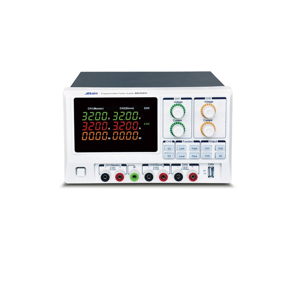 SK33231/SK33251是新一代程控直流稳定电源。使用LED显示电源工作状态:采用大规模集成电路:提供3路电压输出,其中1、2路稳压、稳流值步进可调,稳压稳流两种工作状态可随负载的变化自动转换,1、2路输出可串联、并联、独立工作,第3路提供了可选择的1.8V、2.SV、3.3V、SV四种输出电压,并且提供过载保护。体积小,工作可靠,使用方便。 性能特点: