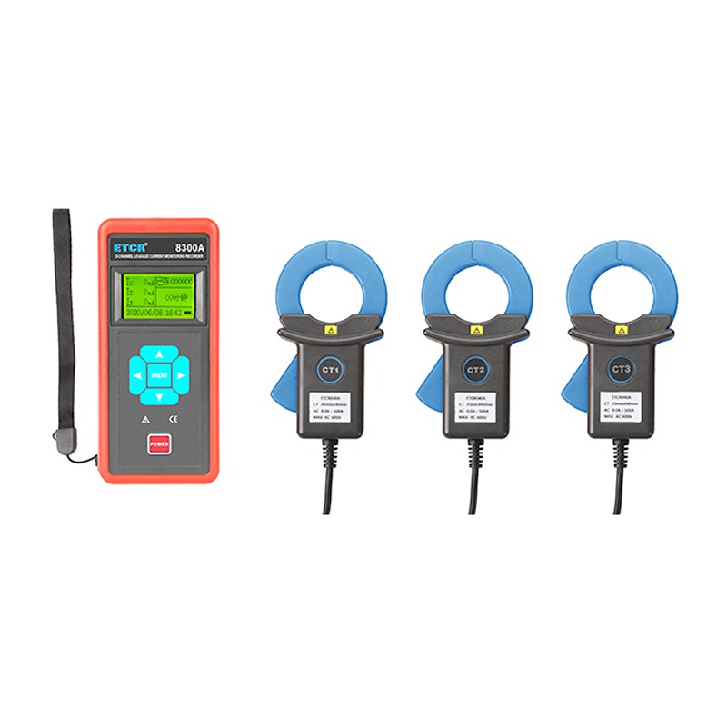 ETCR8300A三通道漏电流记录仪是为现场在线同时监测、记录1~3路交流电流或漏电流而精心设计制造,由记录仪主机、电流钳、充电器、监控软件、通讯线等组成,可广泛应用在380/220V电力系统中,为用电检查人员提供安全、准确、便捷的电力仪器。 主机采用LCD显示,三通道同屏显示,一目了然,有中文操作界面和英文操作界面两款选择,适合于不同国家的工程技术人员。记录仪采用大容量可充电锂电池,三格电量显示,续航最多可以持续记录7天。具有系统时钟功能和超大存储空间,能现场设定监测记录时间,能存储20万组数据,具有自动存储间隔时间设定功能,记录周期从1秒~99分钟内设置。 监控软件具有在线实时监控与历史查询功能,历史数据读取、查阅、保存、报表等功能。 电流钳选用坡莫合金制作,采用CT技术及独特的双层磁性屏蔽技术,几乎不受外界磁场影响,确保了常年无间断监测的高精度、高稳定性、高可靠性。