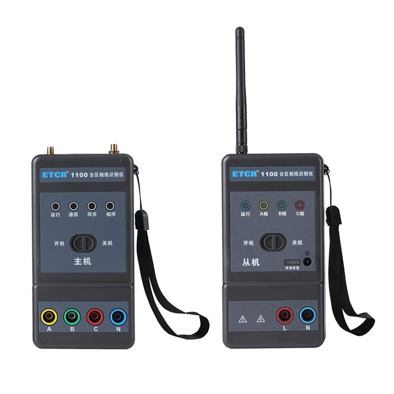 ETCR1100台区相线识别仪,别名:相线测试仪、台区线路识别仪等,是一种便携式供电相线识别设备,用于识别同一台区的低压供电线路A、B、C相别。仪器由主机、从机、RF天线、测试线组成。 由于城市发展及历史原因,供电网络中的布线较为混乱,自变压器输出至用户的线路无法分清A、B、C各相。这为抢修、排障及新技术、新设备的安装带来许多不便。本仪器通过卫星通信等新技术手段,能快速准确识别同一台区距离较远的线路两点各相线相别是否一致。 仪表通讯距离远,台区全覆盖,即便城区建筑物密集台区也能快速判断相线,仪表操作简易,准确直观,体积小携带方便、安全快速,广泛应用于电缆施工、设备安装、线路维护工作,特别适合三相不平衡治理装置安装施工使用。 产品特点: 1. 广泛应用于电缆施工、电力设备安装、线路维护工作,是三相不平衡治理装置安装施工必备仪表。 2. 采用卫星通信技术,通讯距离远(最大可达8公里),台区全覆盖,相线判断快速准确直观。 3. 主机与从机通讯可靠,体积小携带方便、特别适合城区建筑物密集的台区相线识别。 性能特点:
