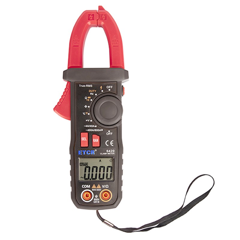 ETCR6420钳形万用表是一种便携式钳形数字多用表,可测量直流电压、交流电压电流真有效值、电阻、频率、通断测试、温度、二极管正向压降等参数,电容测量量程扩大到10mF且测量大电容速度快。该仪表结构小巧、操作容易、携带方便,是电气测量之理想工具。为用电检查人员提供一种安全、准确、便捷的新型电力仪表,是电工安全检测的必备工具。
