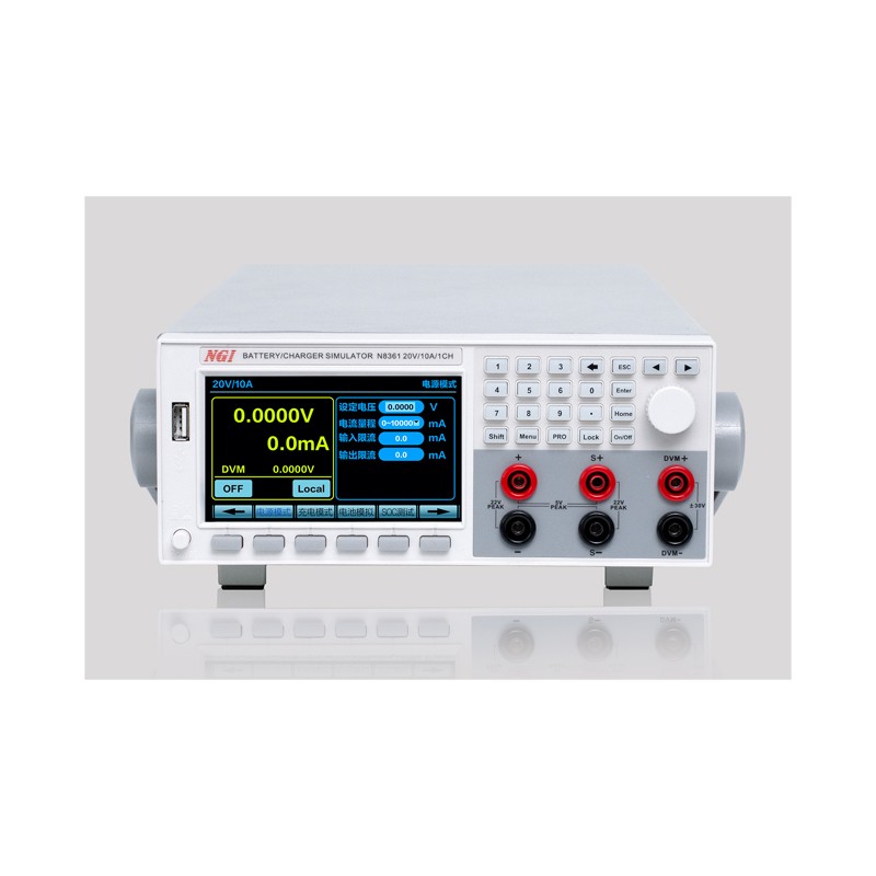 N8361系列 高精度可编程电池模拟器 N8361系列电池模拟器是一款功率可达200W的高性能电池模拟器,覆盖了市场上主流消费类电子产品用锂电池规格。N8361系列延承NGI电池模拟器多功能高性能软件平台,支持电源模式、充电模式、电池模拟、内阻模拟、SOC模拟、故障模拟等多种测试功能,实现电池多种特性模拟;输出特性可与真实电池媲美,动态响应特性快,电压上升下降时间≤50μs,电流精度高达1μA;电流双向流动,源载状态快速切换。N8361系列产品可广泛应用于消费类电子产品测试领域。 N8361系列选型表