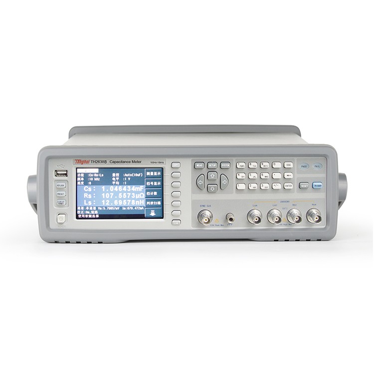 TH2638 是用于陶瓷电容生产测试的一款电容表。TH2638 可用于在频率 100Hz,120Hz, 1kHz,10kHz,40kHz, 100kHz,1MHz 和测试信号电平(0.1V ∼1V)对陶瓷电容作出评估。 TH2638 可提供在所有频率下基本精度为±0.07%(C)、±0.0005(D)的 C-D 测量, 且在每个范围内都具有七位数的分辨率(损耗因数分辨率为 1 ppm)。 利用其内置的比较器,TH2638 可输出比较/判定结果,用于将元件分类为最多 10 个分 档(BIN)。此外,通过使用处理器接口和扫描仪接口选件,TH2638 很容易与元器件处理器、 扫描仪和系统控制器结合使用,以使元器件测试、分类和质量控制数据处理实现全自动化。 GPIB/LAN/USB 接口是 TH2638 上的标准接口(TH2638A/B/C 不包含 GPIB 和 Scanner 接口),并支持自动测试。 应用 ■ 电解电容器高速高精度测试 ■ 陶瓷电容器高速高精度测试 ■ 薄膜电容器高速高精度测试 ■ 各种电容器生产线高速测试 ■ 高速自动化生产线集成测试 ■ 半导体、器件、材料分布电容测试 性能特点 测试频率:最高10kHz,4频点 精度:容量C:±0.07%,损耗D:±0.0005 测试速度:最快2. 3ms/次,5档速度选择 11档分选,PASS/FAIL指示,档计数功能 超稳定的ESR 1μΩ读数分辨率 10点列表扫描,可对频率、电压进行扫描 V、I测试信号电平监视功能 低阻抗测试,信号电平补偿功能 内部文件存储和外部U盘文件保存 测量数据可直接保存到U盘 截屏保存到U盘 兼容SCPI命令集 RS232C、USB CDC、 LAN、GPIB接口 HANDLER接口、SCANNER接口、机械手接口 接触检查功能 同步信号源 技术参数