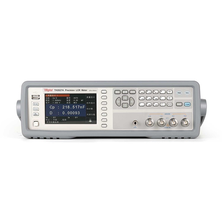 TH2827A是具有多种功能和更高测试频率的新型LCR数字电桥,体积小,紧凑便携,便于上架使用。本系列仪器基本精度为0.05%,测试频率最高300kHz及10mHz的分辨率,4.3寸的LCD屏幕配合中英文操作界面,操作方便简洁。集成了变压器测试功能,提高了测试效率。仪器提供了丰富的接口,能满足自动分选测试,数据传输和保存的各种要求。 TH2827A 应用 ■ 无源元件: 电容器、电感器、磁芯、电阻器、压电器件、变压器、芯片组件和网络元件等的阻抗参数评估和性能分析 ■ 半导体元件: LED驱动集成电路寄生参数测试分析;变容二极管的C-VDC特性;晶体管或集成电路的寄生参数分析 ■ 其它元件: 印制电路板、继电器、开关、电缆、电池等的阻抗评估 ■ 介质材料: 塑料、陶瓷和其它材料的介电常数和损耗角评估 ■ 磁性材料: 铁氧体、非晶体和其它磁性材料的导磁率和损耗角评估 ■ 半导体材料: 半导体材料的介电常数、导电率和C-V特性液晶材料:液晶单元的介电常数、弹性常数等C-V特性 ■ 液晶单元: 介电常数、弹性常数等C-V特性 TH2827A 技术参数 显示器 | 480×RGB×272 4.3寸TFT LCD显示器 | 测试信号频率 | TH2827A | 20Hz—300kHz | 最小分辨率 | 10mHz,4位频率输入 | 准确度 | 0.01% | AC 电平 | 测试信号电压范围 | 5mV—2Vrms | 电压最小分辨率 | 100μV,3位输入 | 准确度 | ALC ON | 10% x设定电压 + 2mV | ALC OFF | 6% x设定电压 + 2mV | 测试信号电流范围 | 100μA—20mA | 电流最小分辨率 | 1μA,3位输入 | 准确度 | ALC ON | 10% x设定电流 + 20μA | ALC OFF | 6% x设定电压 + 20μA | DC偏置电压源 | 电压 / 电流范围 | 0V— ±5V / 0mA—±50mA | 分辨率 | 0.5mV / 5μA | 电压准确度 | 1% x设定电压 + 5mV | ISO ON | 用于电感、变压器加偏置测试 | AC源内阻 | ISO ON | 100Ω | ISO OFF | 30Ω、50Ω、100Ω可选 | DCR源内阻 | 30Ω、50Ω、100Ω可选 | LCR测试参数 | |Z|, |Y|, C, L, X, B, R, G, D, Q, θ, DCR, Vdc-Idc | 测试页面参数显示 | 一组主、副参数;201点列表扫描 | 变压器测试参数 | DCR1(初级,2端), DCR2(次级,2端), M(互感),N,1/N, Phase(相位), Lk(漏感),C(初、次级电容) | 基本测量准确度 | LCR测试参数 | 0.05% | N | 0.1% | 校准条件 | 预热时间:≥30分钟;环境温度:23±5ºC; 信号电压:0.3Vrms-1Vrms;清“0”:OPEN、SHORT后;测试电缆长度:0 m | 测量时间(≥10 kHz) | 快速: 13 ms /次 中速: 67 ms/次慢速: 187 ms/次另加显示字符刷新时间 | LCR参数显示范围 | | Z | , R , X,DCR | 0.00001Ω — 99.9999MΩ | |Y|,G,B | 0.00001μs — 99.9999s | C | 0.00001pF — 9.99999F | L | 0.00001μH — 99.9999kH | D | 0.00001 — 9.99999 | Q | 0.00001 — 99999.9 | θ(DEG) | -179.999º — 179.999º | θ(RAD) | -3.14159 — 3.14159 | Δ% | -999.999% — 999.999% | 等效电路 | 串联, 并联 | 量程方式 | 自动, 保持 | 触发方式 | 内部, 手动, 外部, 总线 | 平均次数 | 1-256 | 校准功能 | 开路, 短路全频、点频校准,负载校准 | 数学运算 | 直读, ΔABS, Δ% | 延时时间设定 | 0 -- 999, 最小分辨率100us | 比较器功能 | 10档分选,BIN1~BIN9、NG、AUX | 档计数功能 | PASS、FAIL前面板LED显示 | 列表扫描 | ·201点列表扫描·可对频率、AC电压/电流、内/外 DC偏置电压/电流进行扫描测试·每扫描点可单独分选 | 内部非易失性存储器 | 40组LCRZ仪器设定文件 | 外部USB存储器 | GIF图像LCRZ仪器设定文件测试数据USB存储器直接存储 | 接口 | I/O接口 | HANDLER,从仪器后面板输出 | 串行通讯接口 | USB、RS232C | 并行通讯接口 | GPIB接口(选件) | 网络接口 | LAN | 存储器接口 | USB HOST(前面板) | 通用技术参数 | | 工作温度, 湿度 | 0℃-40℃, ≤ 90%RH | 电源要求 | 电压 | 99V-121V, 198V-242V AC | 频率 | 47Hz-63Hz | 功耗 | 最大80VA | 体积(W×H×D) | 280 mm × 88 mm × 370 mm (无护套) 369 mm × 108 mm × 408 mm (带护套) | 重量 | 约5kg |