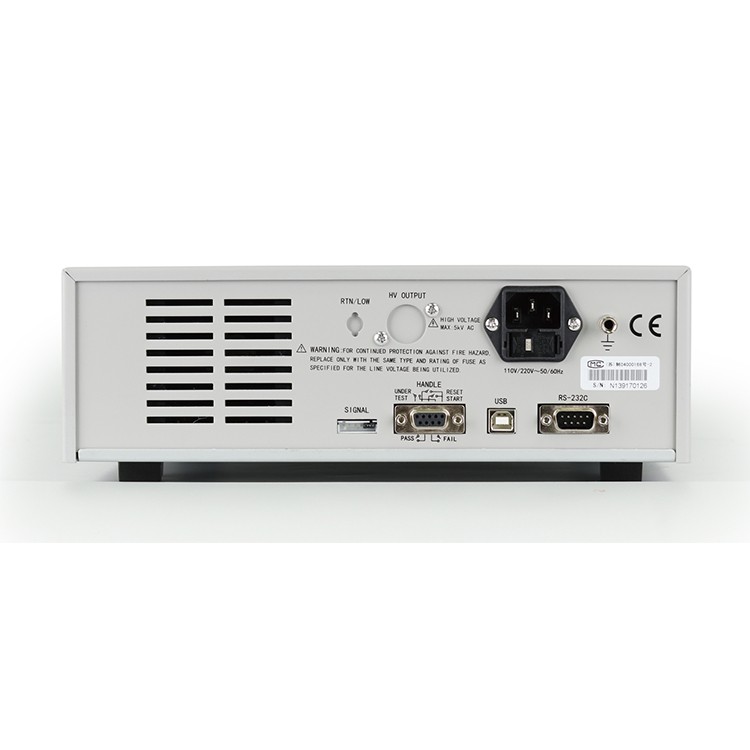 TH9310B交流耐压测试仪是一款小功率经济型智能安规测试仪器。体积小、重量轻、外形美观、操作简便。TH9310B产品可广泛应用于家用电器、变压器、电气设备、元器件的安全性能检查。 应用 ■ 自动化测试系统 ■ 家用电器 ■ 变压器、电机 ■ 电气设备 ■ 电热器具 ■ 照明行业 ■ 新能源汽车 ■ 电子元器件 ■ 医疗设备 技术参数 型 号 | TH9310B | 耐压测试 | | 输出电压 | AC | 0.05— 5.00kV±(2%读数+5个字),频率50Hz、60Hz可面板选择 | 电压调整率 | ≤(1%- 5V)(额定功率) | 电流测试范围 | AC | 0.000mA - 10.00mA ±(2%读数+2个字) | 快速放电功能 | 测试结束后自动放电(DCW) | 电弧侦测 | | 测量范围 | AC | 1- 9级 (出厂默认值为5)(对应电流 20mA、18mA、16mA、14mA、12mA、10mA、7.7mA、5.5mA、2.8mA) | 一般参数 | | 存储器 | 20个测试文件,每个文件可存储20个测试步骤 | 电压上升时间 | 0.1s - 999.9s | 测试时间设定(AC/DC) | 0.2s - 999.9s | 电压下降时间 | 0.1s - 999.9s | 等待时间(IR) | 0.2s - 999.9s | 时间精度 | ±(1%+0.1s) | 接口 | | 标配 | HANDLER,RS232,USBDRV(电脑接口),USBHOST(系统升级接口) |