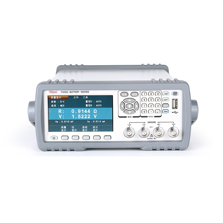 随着消费电子产品的崛起,智能手机、家电、电动汽车和电动车等层出不穷,但这些产品都需要电池才能正常工作,是否能够快速准确的检测出电池性能的优劣将会直接影响到产品的性能。 同惠电子凭借其在阻抗测试领域深厚的技术积淀和广泛的市场调研,推出了彩色液晶显示的电池测试仪器---TH2523电池测试仪。其**的性能、便捷的操作、精美的外观足以媲美任何竞争产品。 采用1kHz频率的测试恒流源,很好的消除了热电势对被测元件接触的影响而引起的潜在误差。 高达300V(TH2523A)最大测试电压能满足高压电池的需求。 0.1%的基本电阻测量准确度,30mΩ-3000Ω的量程能够覆盖到大部分大型的电池组到纽扣电池的电阻测试要求,更能满足一些趋向大型化、低阻化的锂电池。 最快测试速度更是能达到20ms/次左右。 能够满足一般元件的交流低电阻测量要求。 TH2523提供了几乎所有主流的接口功能,可方便的与PC进行数据通讯和远程控制。