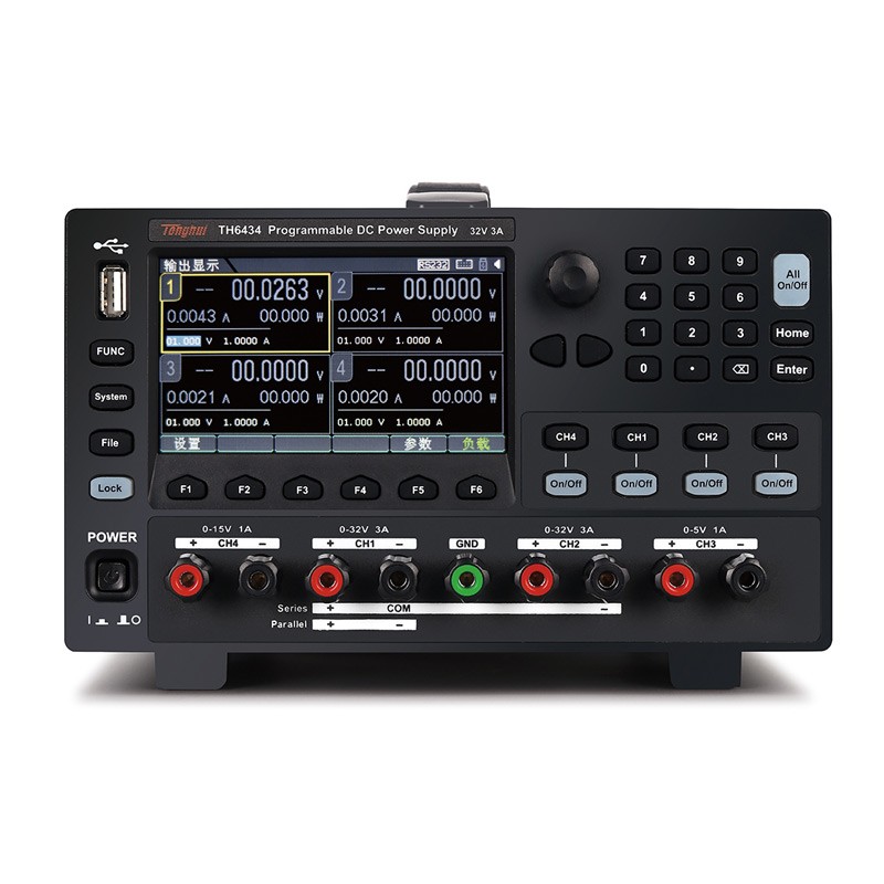 TH6430系列多通道可编程线性源载一体电源具有极快的电压上升速度,并具有超高的精度和分辨率,支持面板编程;直流电子负载具有高精度及多种测试功能,性能优越。