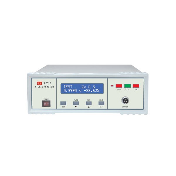 简要介绍 LK2512B/LK2511直流低电阻测试仪是宽范围、精密的直流电阻测试仪器。适用于电机变压器、电感线圈、继电器接触电阻、开关接插件接触电阻、导线电阻、元器件焊点接触电阻、印制板线条及焊孔电阻等。 技术指标 型号 | LK2512B | 显示范围 | 0.001mΩ-19.99KΩ | 精度 | ±0.1%+3digit | 测试电流 | 1A/100mA/10mA/1mA/100μA | 量程 | 20mΩ/200mΩ/2Ω/20Ω/200Ω/2KΩ/20KΩ/ | 分辨率 | 1μΩ/10μΩ/100μΩ/1mΩ/10mΩ/100mΩ/1Ω | 测量速度 | 慢速、快速 | 量程方式 | 手动、自动 | 标准附件 | LK26004B | 接口 | 标准PLC接口 选配RS232接口 |