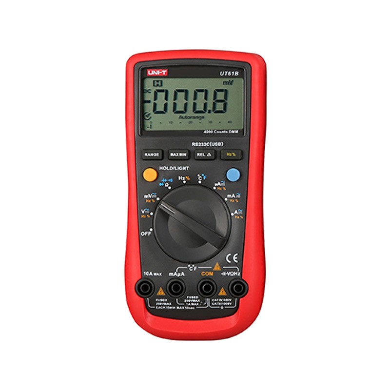 | UT61B产品主要特点 直流电压1000V测量 交流电压750V测量 交直流电流10A测量 40MΩ大电阻测量 电容测量4000uF 频率/温度测量 RS-232数据传输 通断蜂鸣 自动关机 低电压显示 |