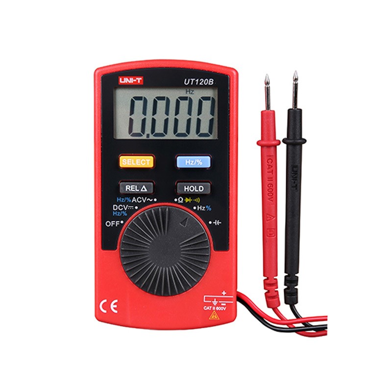 UT120系列是一款可随身携带、小巧、轻便的3 3/4位自动量程口袋型数字万用表,其功能齐全,性能稳定,精度高,功耗低,结构新颖,安全可靠,操作简单,好用、耐磨、耐用,是广大用户的理想测量仪表。可用于家庭、学校、冶炼、通讯、制造、石油、电力、化工等领域,是电路/电力设备维护和维修的理想工具。
