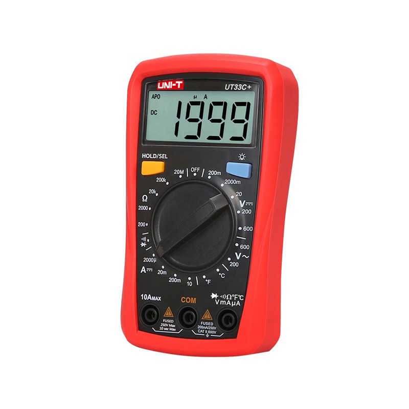 全新一代UT33+系列产品重新定义了入门级别数字万用表的性能标准。全新LCD显示布局提供更清晰的显示和更好的用户体验。UT33+系列全面提升了产品的安全标准,产品能确保用户能在CAT II 600V使用环境内安全工作。UT33C+为具有温度测量功能的入门级数字万用表;是电工优先选择的数字万用表。