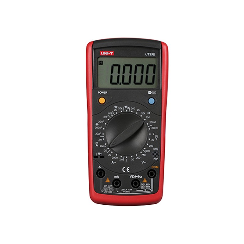 UT39E是4 1/2数位手动切换量程数字万用表。全量程过载保护和独特的外观设计,使之成为性能更为优越的电工仪表。 可适用于冶炼、通讯、制造、石油、电力、化工等行业的测量,是电路、电力设备维护和维修的理想工具